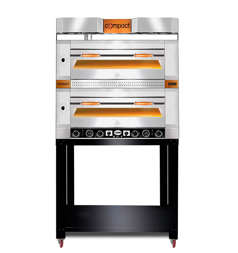Die großzügigen Innenmaße (62 x 62 x 15 cm je Etage) ermöglichen die gleichzeitige Zubereitung von bis zu 8 Pizzen Ø 30 cm (4+4 pro Etage). Jede Etage ist mit einer separaten Temperaturregelung (Ober-/Unterhitze) sowie einem eigenen Ein-/Ausschalter ausgestattet, was maximale Flexibilität im Küchenalltag bietet.