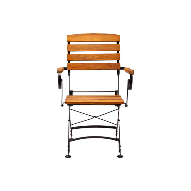 Die integrierten Armlehnen erhöhen den Sitzkomfort – besonders geeignet für längere Aufenthalte Ihrer Gäste. Durch die klappbare Bauweise lässt sich der Stuhl platzsparend verstauen und unkompliziert transportieren – perfekt für wechselnde Bestuhlungen oder Saison-Terrassen.