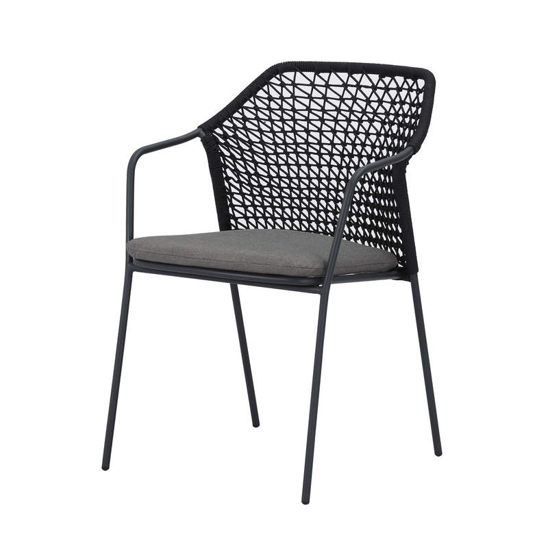 Burano – Outdoor Stuhl aus Stahl mit Seilgeflecht & Sitzkissen