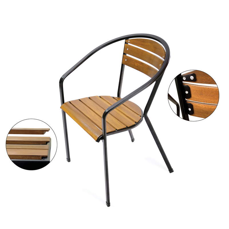 - FSC-zertifiziertes Akazienholz: Die Sitzfläche und Rückenlehne bestehen aus robustem Akazienholz, das nicht nur umweltfreundlich, sondern auch äußerst widerstandsfähig gegen Feuchtigkeit und UV-Strahlung ist. Die Holzlatten sind 15 mm stark, was zusätzliche Stabilität und Haltbarkeit gewährleistet.