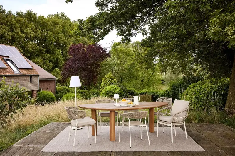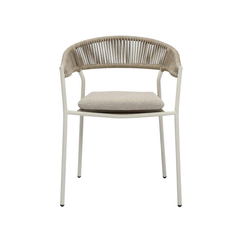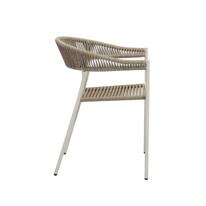Das stabile Stahlgestell sorgt für eine lange Lebensdauer und macht den Stuhl ideal für den täglichen Einsatz im Außenbereich. Die Sitz- und Rückenfläche aus hochwertigem Seilgeflecht verleiht dem Stuhl eine moderne, luftige Optik und bietet gleichzeitig angenehmen Sitzkomfort.