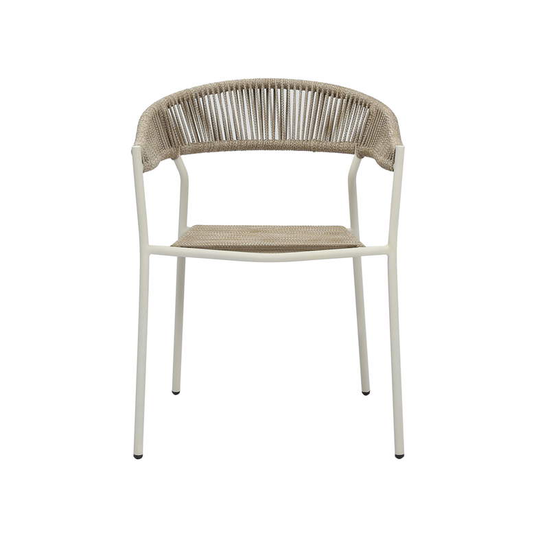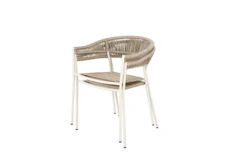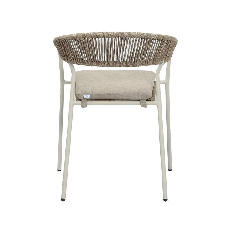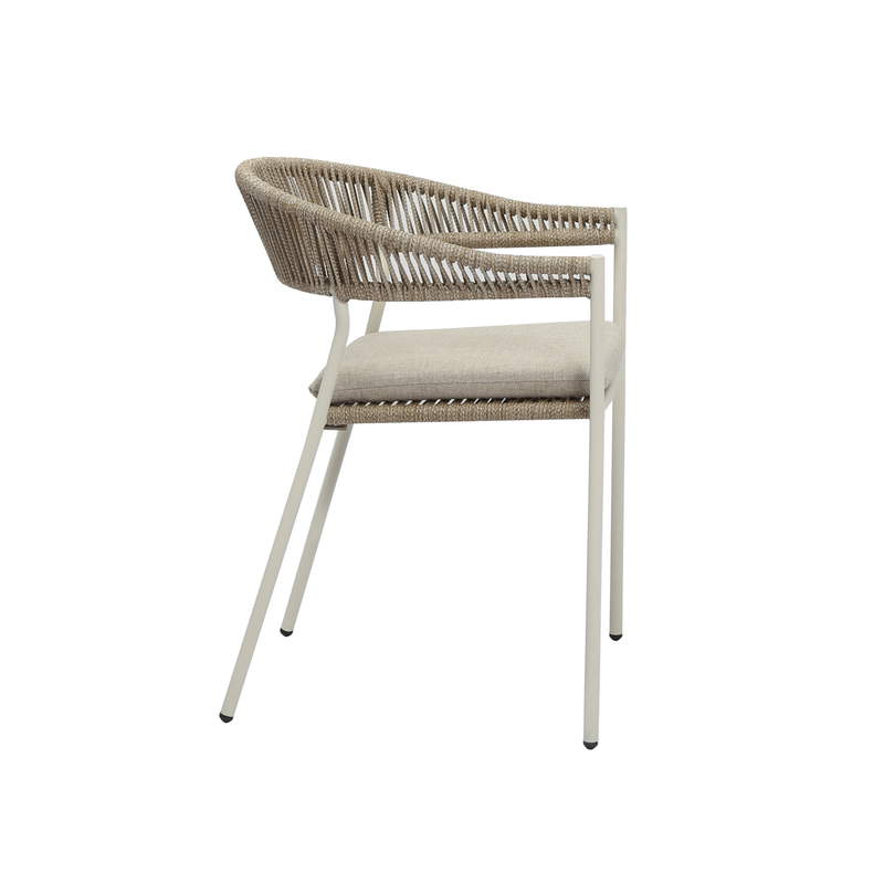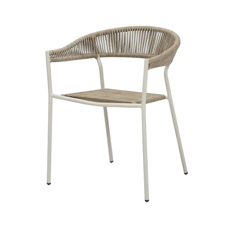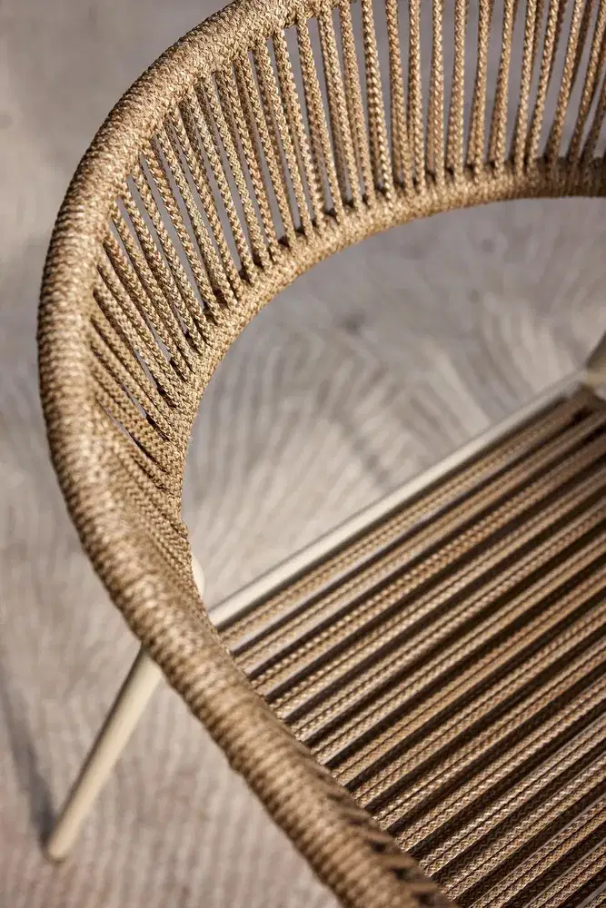 Sebastian – Moderner Outdoor Stuhl in Sand mit Seilgeflecht & Stahlgestell
