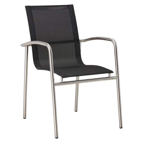 Entdecken Sie den Komfort des Stapelstuhls Khartum aus Edelstahl und Ergotex: langlebig, stapelbar und wetterfest. Ideal für Ihren Außenbereich!