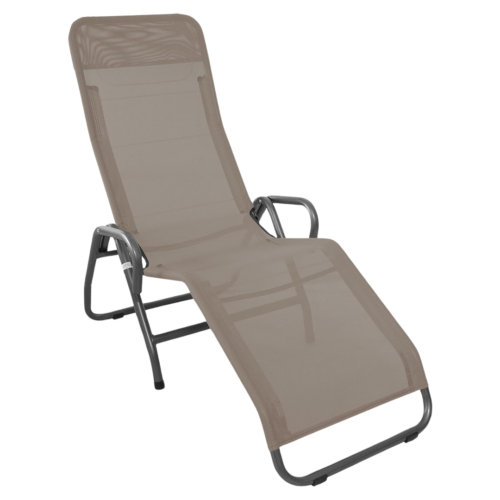Die Entspannungsliege POOL III Taupe – Perfekte Kombination aus Stabilität, Komfort und Stil. Klappbar und wetterfest für entspannte Stunden im Freien.