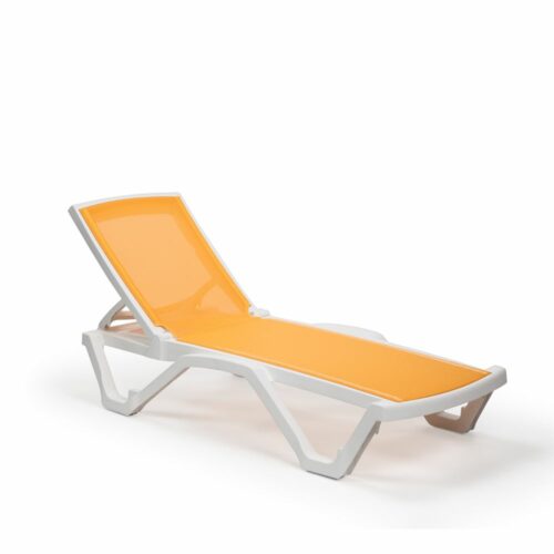 Die Liegen Mare ohne Armlehnen sind die perfekte Wahl für alle, die modernes Design, Komfort und Funktionalität in einer Sonnenliege suchen. Mit ihrer lebhaften Farbkombination aus Elfenbeinweiß und Gelb bringt diese Liege Frische und Eleganz in jeden Außenbereich. Egal, ob im Garten, auf der Terrasse oder am Pool – die Mare Liege kombiniert Stil mit langlebigen Materialien und ergonomischem Design.