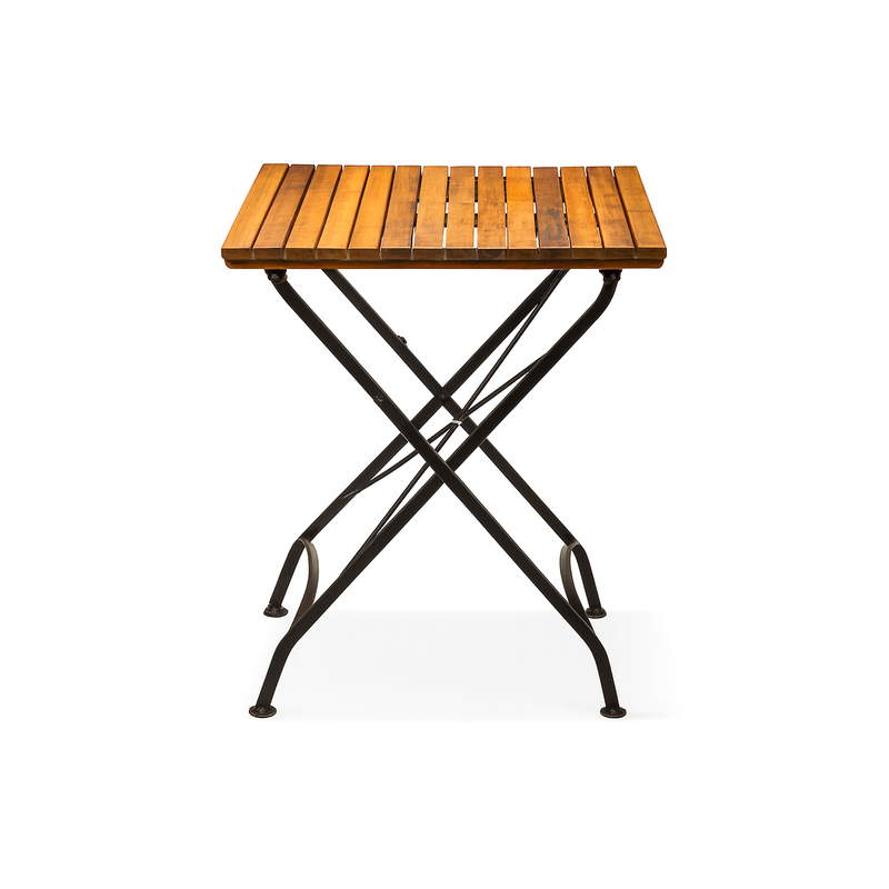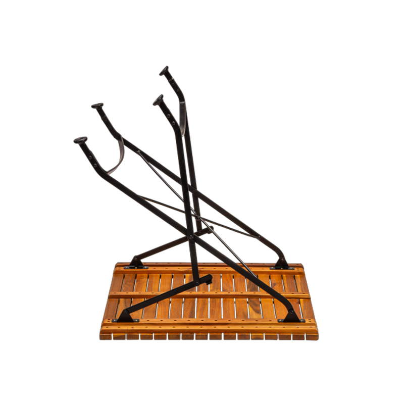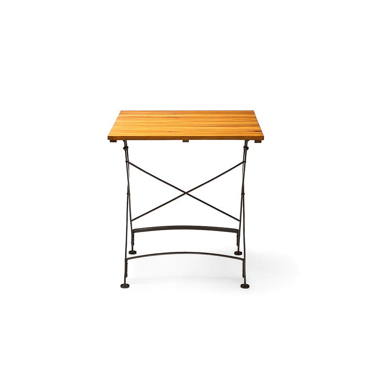Das pulverbeschichtete Stahlgestell gewährleistet hohe Stabilität, auch bei intensiver Nutzung im Gastro-Alltag. Die Konstruktion ist auf eine häufige Bestuhlung, Umbauten und regelmäßiges Klappen ausgelegt. Die Tischplatte aus Akazienholz überzeugt durch ihre natürliche Härte und ansprechende Optik – perfekt für authentische Biergarten-Atmosphäre.