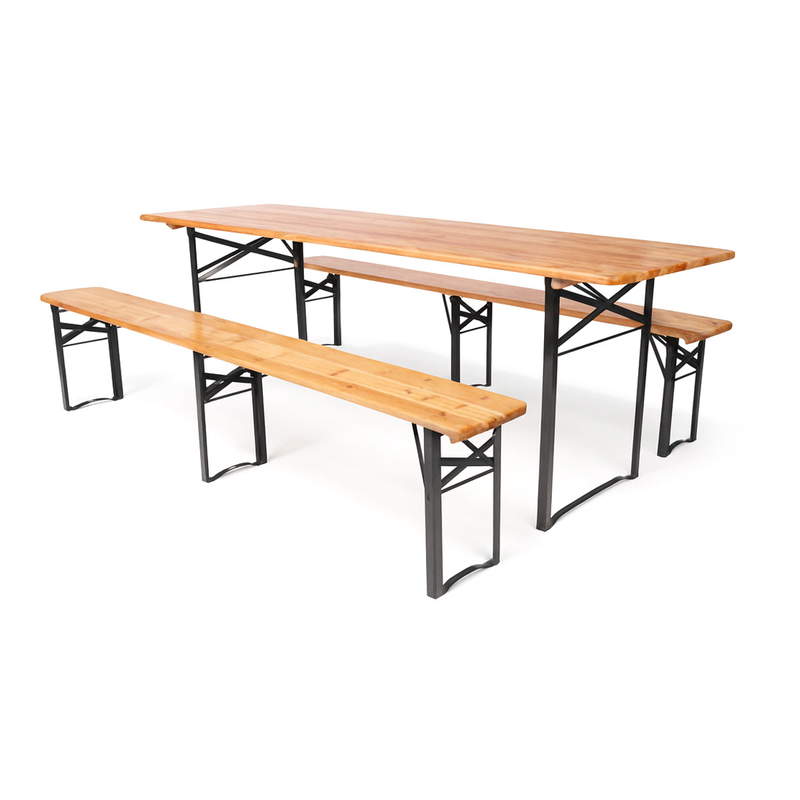 Unsere Festzeltgarnitur Woody ist in zwei praktischen Größen erhältlich:
