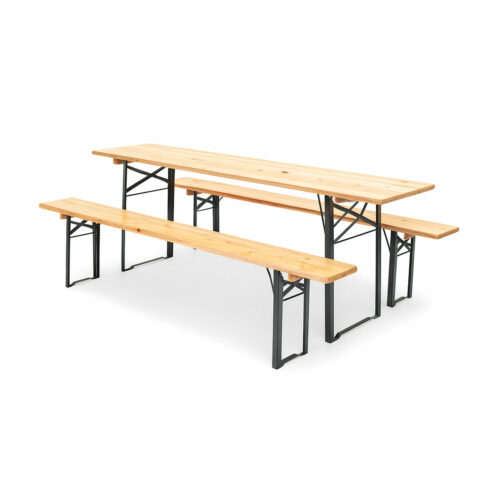 Eine Bierzeltgarnitur besteht aus 1 Tisch und 2 Bänken (Bänke 220×25 cm).