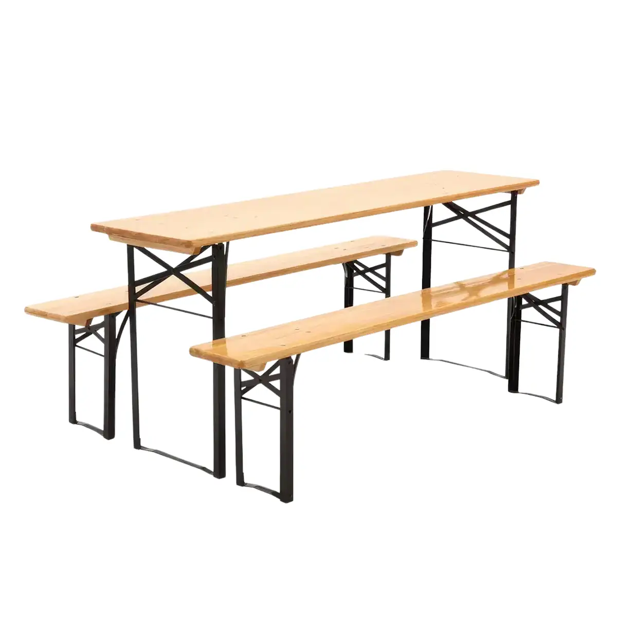 Eine Bierzeltgarnitur besteht aus 1 Tisch und 2 Bänken (Bänke 220×25 cm).