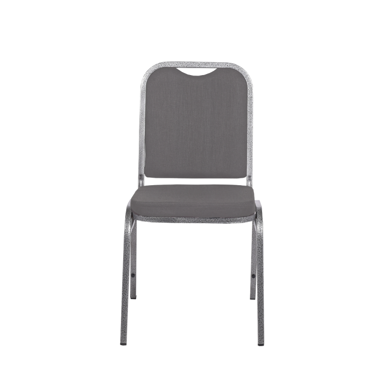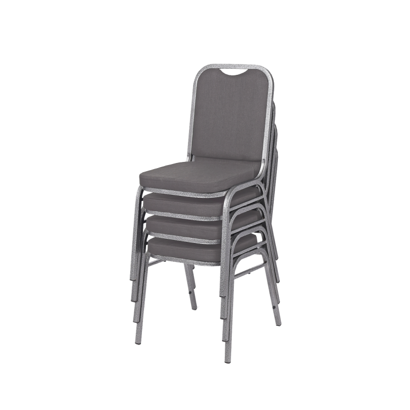 Klassischer, stapelbarer Bankettstuhl für Säle, Hotels und Eventlocations. Grauer, strapazierfähiger Polsterstoff, komfortables Sitzpolster (4 cm), stabiler Stahlrahmen (19 × 19 mm), bis zu 19-fach stapelbar – eine zuverlässige Lösung für professionelle Veranstaltungen.
