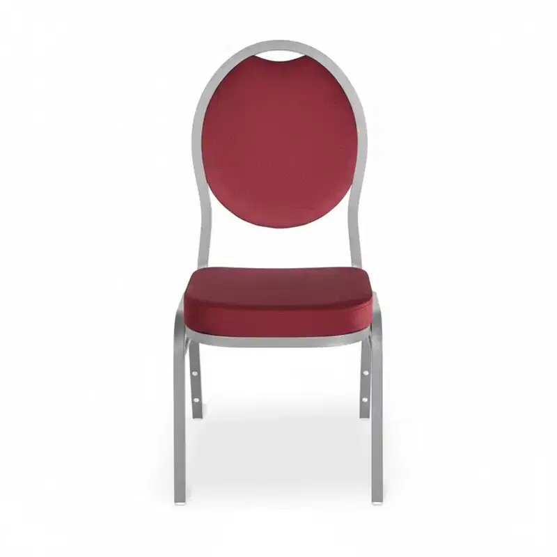 Stapelbarer Bankettstuhl Rot mit stabilem Metallrahmen. Ideal für Restaurants, Hotels, Konferenzen & Events. Platzsparend & professionell.