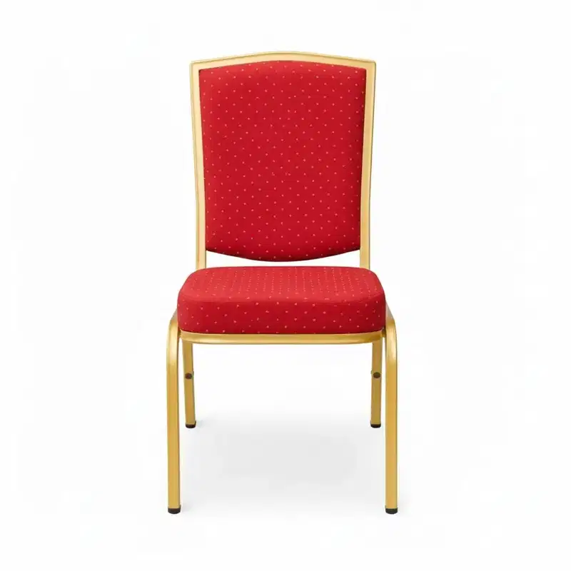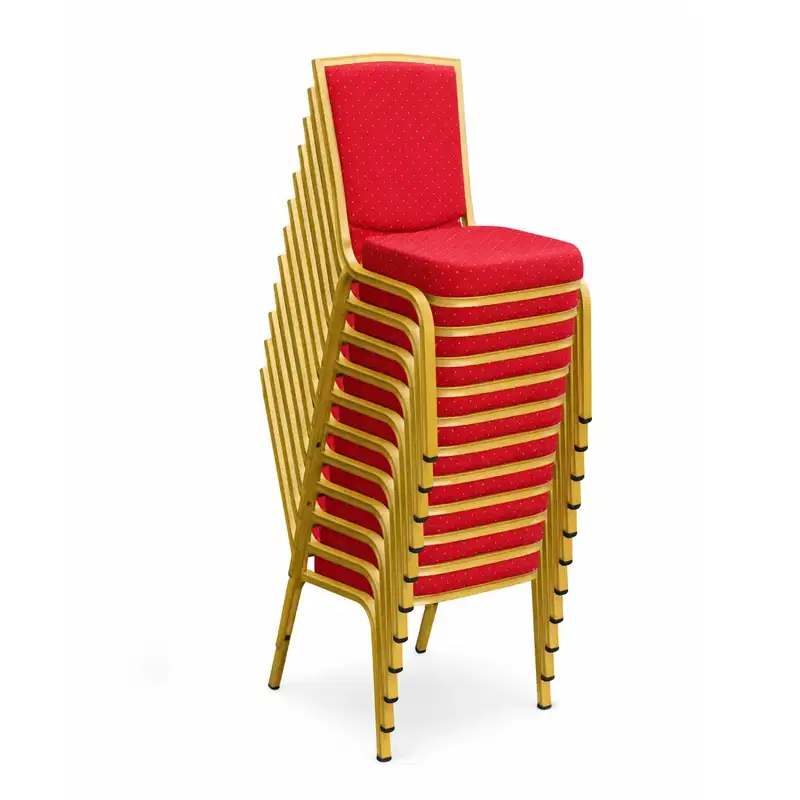 Eleganter, stapelbarer Bankettstuhl in Rot – ideal für Restaurants, Hotels, Hochzeiten & Events. Komfortabel, vielseitig und platzsparend.