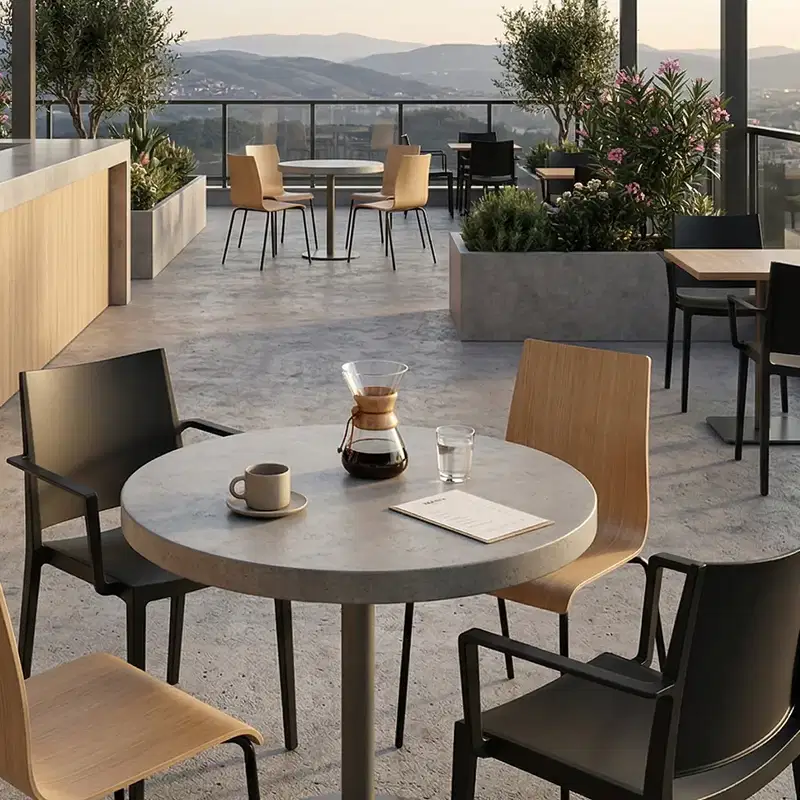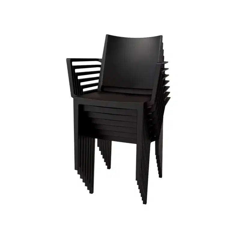 Der Caféstuhl mit armlehne in tiefem Schwarz ist die perfekte Wahl für Cafés, Bistros ve anspruchsvolle Außenbereiche. Durch seine großzügige Formgebung ve die matte Oberflächenstruktur verleiht er jedem Gastraum eine moderne ve professionelle Atmosphäre. Dank der Verwendung von innovativen Materialien ist dieser Stuhl speziell für die hohen Belastungen im gewerblichen Alltag entwickelt worden ve überzeugt sowohl im Innen- als auch im Außenbereich. Entdecken Sie weitere erstklassige Sitzmöbel in unserer Kategorie Caféstühle.