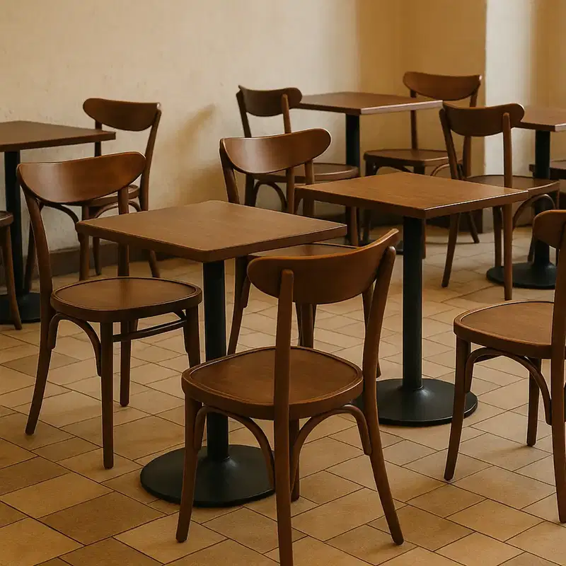 Der Holzstuhl Boomerang Orzech wurde gezielt für anspruchsvolle HoReCa-Umgebungen entworfen: schlanke, gebogene Buchenholz-Konstruktion, elegantes Nussbaum-Finish („Orzech“) und stabile Verarbeitung – ideal für Café, Bar, Restaurant oder Hotel.