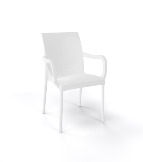 Der Stuhl Iris Weiß mit Armlehne ist ein langlebiger, stapelbarer Stuhl aus hochfestem Technopolymer, der zusätzlichen Komfort bietet und sich sowohl für den Innen- als auch den Außenbereich bestens eignet.
