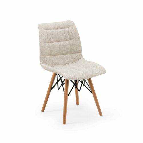 • Stilvolle Farbgebung: Die Kombination aus ecrufarbenem Polstersitz und robusten Holzbeinen verleiht dem Stuhl eine stilvolle und harmonische Ausstrahlung.