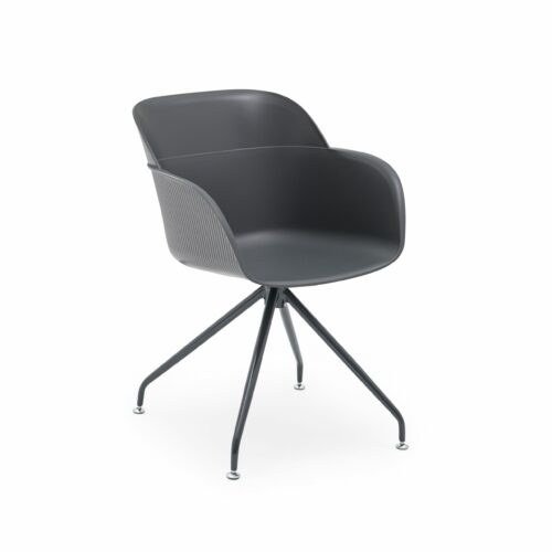 Der Stuhl Shell-Z Anthrazit mit Armlehne kombiniert modernes Design mit hohem Komfort und ist ideal für stark frequentierte Innenräume, von Büros bis hin zu Restaurants.