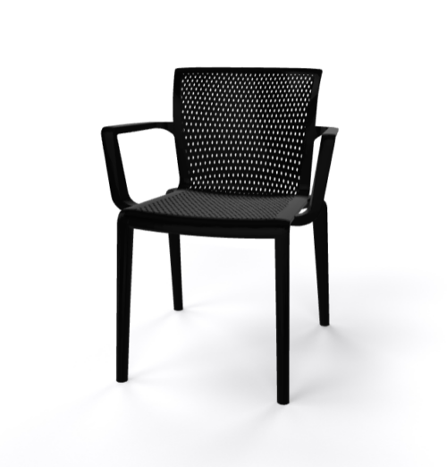 Stuhl Spyker Schwarz mit Armlehne – Ein eleganter, stapelbarer Technopolymer-Stuhl mit Armlehnen, ideal für vielseitige Einsätze im Innen- und Außenbereich.