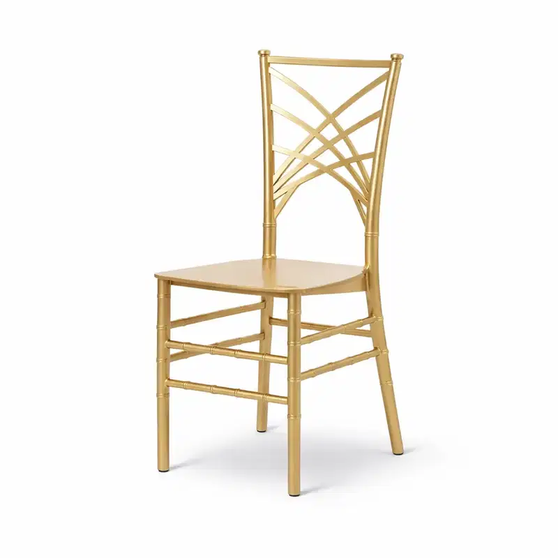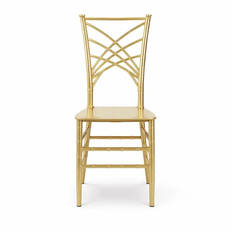 Der Hochzeitsstuhl Chameleon in Champagner ist die erstklassige Wahl für Veranstalter, die ein luxuriöses und zugleich modernes Ambiente schaffen möchten. Mit seiner charakteristischen Rückenlehne, die an die elegante Struktur eines Chameleons erinnert, setzt dieser Stuhl markante optische Akzente bei Hochzeiten, Galas und gehobenen Banketten. Er kombiniert eine filigrane Ästhetik mit der notwendigen Robustheit für den anspruchsvollen gewerblichen Einsatz. Entdecken Sie diese und weitere exklusive Bestuhlungslösungen in unserer Kategorie Hochzeitsstühle.