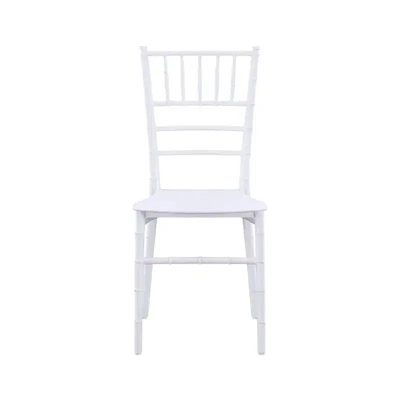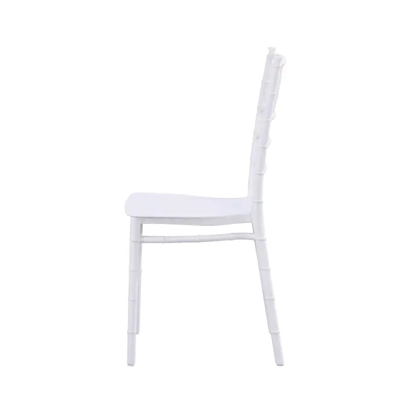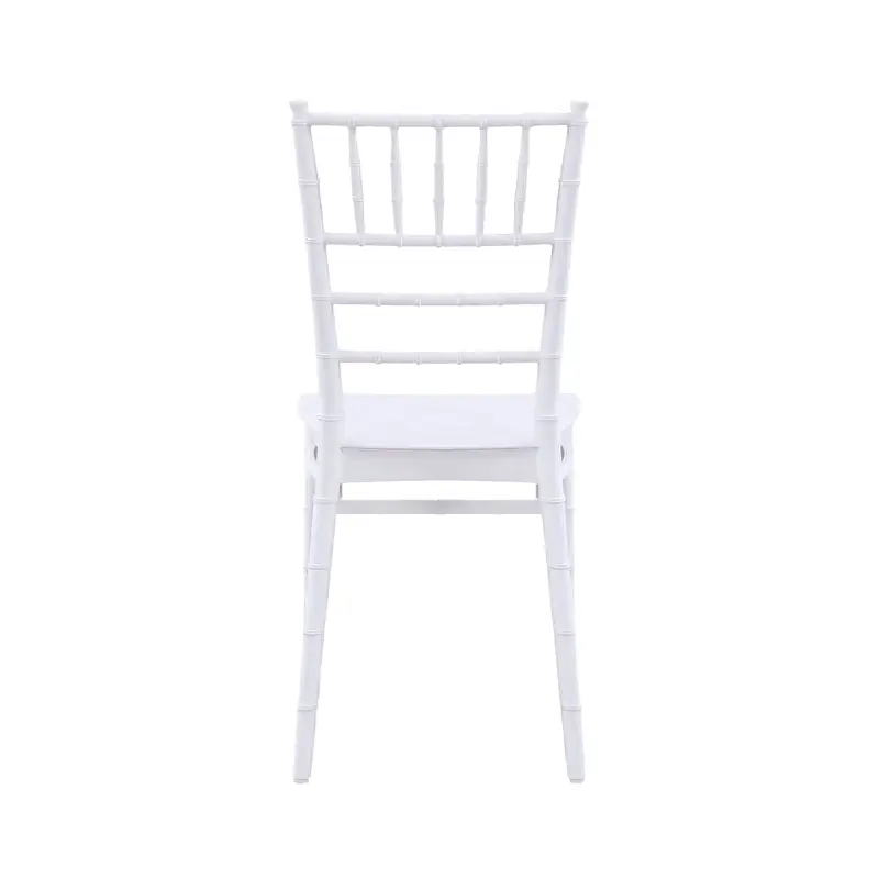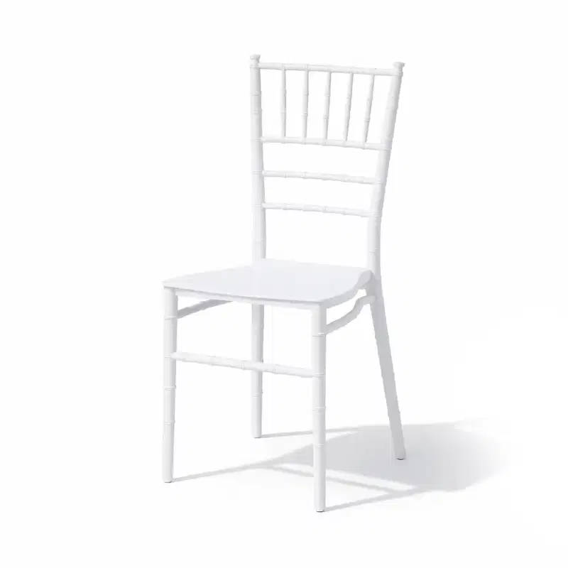 Der weiße Hochzeitsstuhl Chiavari Tiffany Simple besticht durch seine elegante Optik ve eine hochbelastbare, stapelbare Polypropylen-Konstruktion für exklusive Events.