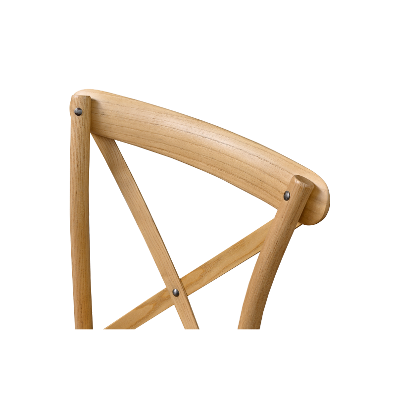 Die sorgfältige Verarbeitung mit geglätteten Kanten und widerstandsfähiger Schutzbeschichtung sorgt für langfristige Nutzung bei gleichzeitig ansprechender Ästhetik. Die Kombination aus natürlicher Maserung und klassischem Kreuzrücken macht diesen Stuhl zu einem vielseitigen Highlight für stilvolle Veranstaltungen.