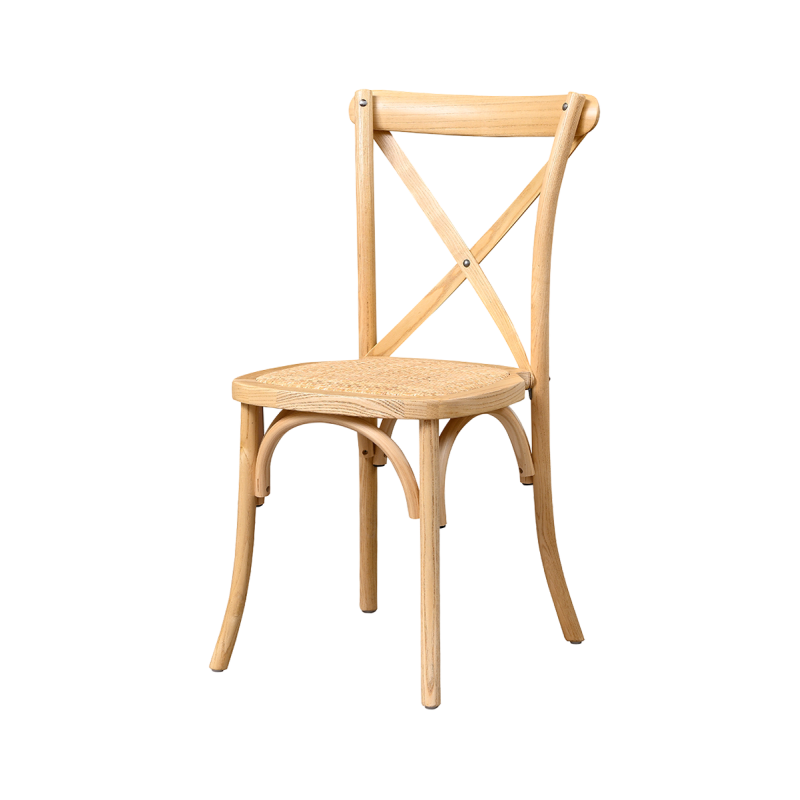 Verleihen Sie Ihrer Event-Location einen natürlichen Charme mit zeitloser Eleganz: Der CROSS-BACK WOOD Hochzeitsstuhl in naturbelassenem Holzton überzeugt mit handgefertigtem Massivholzrahmen und luftiger Rattansitzfläche. Der warme Naturton bringt eine organische, authentische Ausstrahlung mit – perfekt für Boho-, rustikale oder Vintage-Dekorationen.