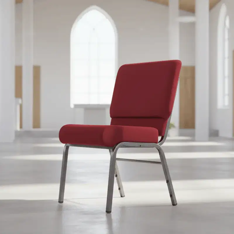 Der Kirchenstuhl Ambassador in Rot bietet eine ergonomische und stapelbare Sitzlösung für Kirchen, Gemeindesäle und professionelle Veranstaltungsräume.
