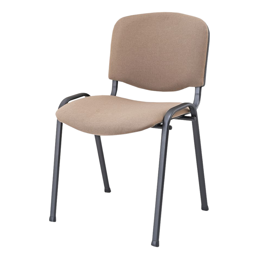 Der Stuhl besitzt ein stabiles Metallgestell mit pulverbeschichteter Oberfläche. Die Sitz- und Rückenpolster sind mit einem robusten Stoffbezug in Braun versehen, der abriebfest und langlebig ist – perfekt für den intensiven Dauereinsatz.