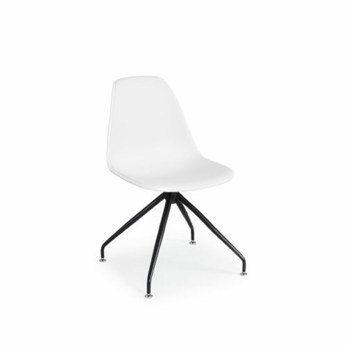 Der Stuhl EOS-Z in Weiß/Weiß mit schwarzen Beinen, erhältlich bei Gastro Uzal, kombiniert modernes Design mit Komfort und bietet eine stilvolle Sitzgelegenheit für Arbeitsumgebungen wie Home-Offices, Besprechungsräume und Büros.