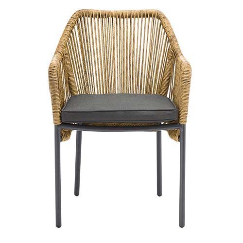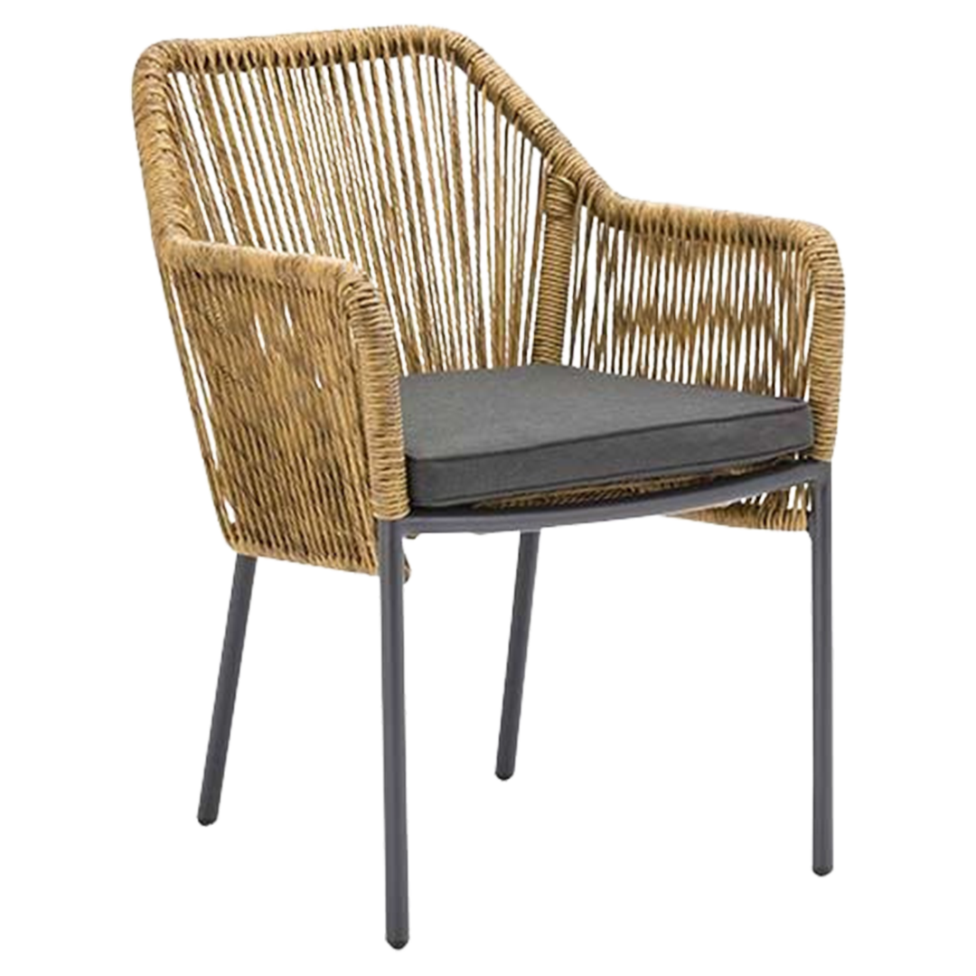 Genießen Sie den Komfort des Korbsessels Baleric Natur – stapelbar, mit UV-beständigem Seilgeflecht und inklusive Kissen.