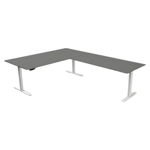 Elektrisch verstellbarer Steh-/Sitztisch in Grafit, mit Anbautisch und Memory-Funktion für ergonomisches Arbeiten.