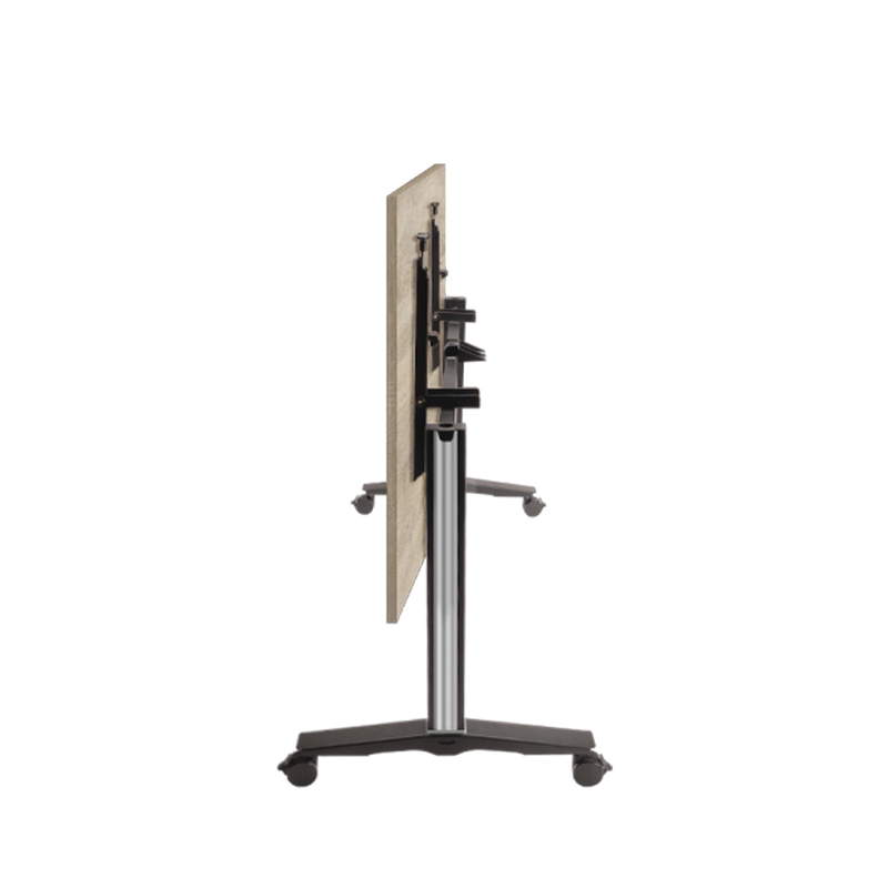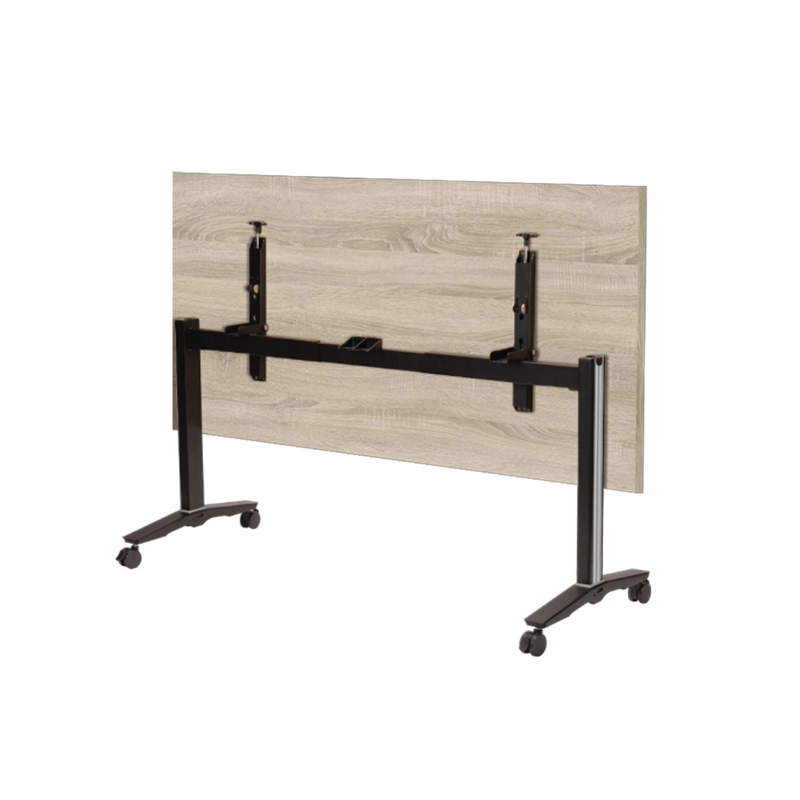 Der Fliptop-Klappmechanismus ermöglicht es, die Tischplatte mit einer einzigen Bewegung vertikal aufzustellen – ganz ohne Kraftaufwand. Die robuste Stahlführung garantiert dabei Langlebigkeit und Stabilität, selbst bei intensiver Nutzung. Dank der vier Rollen, von denen zwei feststellbar sind, lässt sich der Tisch mühelos bewegen und sicher fixieren. Auch das Auf- und Abbauen ist so einfach, dass er von nur einer Person bedient werden kann.