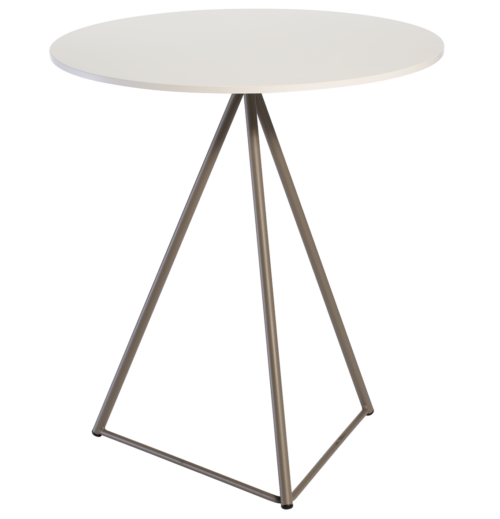 Runder Tisch Glitter – Höhe 74 cm, mit weißer Tischplatte und mineralgrauem Stahlgestell – ideal für Cafés, Restaurants und Wohnräume.