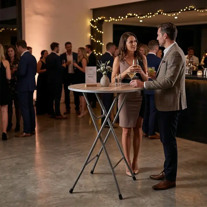 Der Stehtisch EC-K (Ø 80 cm) ist der klappbare Klassiker für jeden Event-Profi – ein wetterfester, standsicherer und extrem platzsparender Tisch, der Funktionalität und Langlebigkeit in der Gastronomie perfekt vereint.