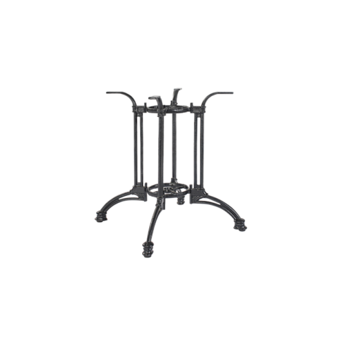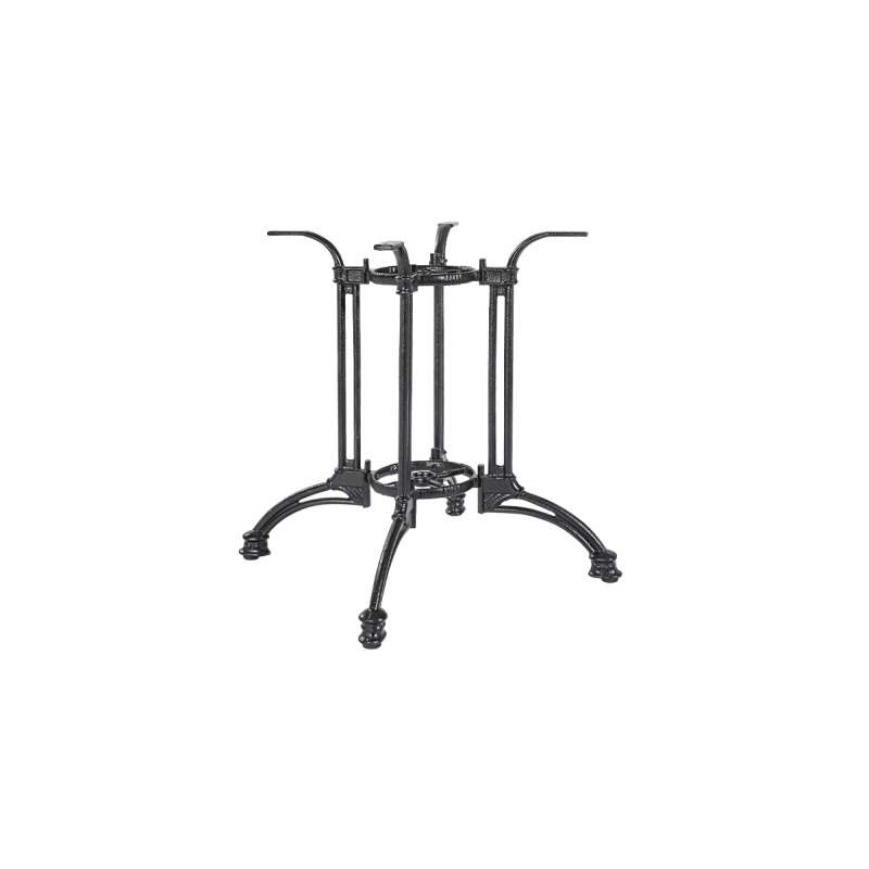 Das Rustical QUATTRO Tischgestell kombiniert dekoratives Design mit massiver Gusseisenkonstruktion. Mit einer 61×61 cm Basis und 72 cm Höhe bietet es maximale Stabilität für größere Gastronomietische – geeignet für Innen- und Außeneinsatz.
