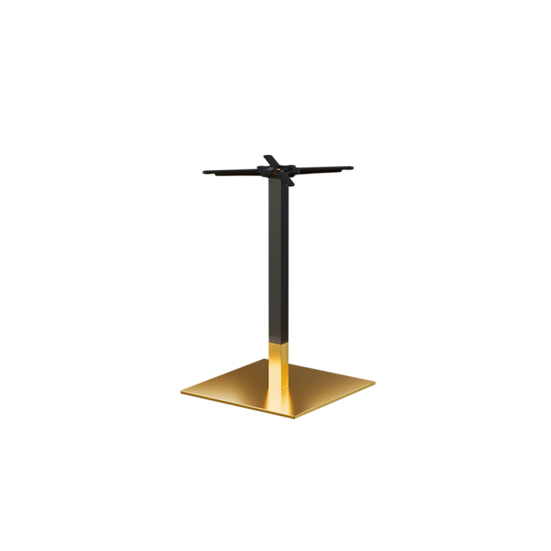 Die Tischbasis Omega verbindet moderne Eleganz mit Stabilität. Schwarze Oberfläche mit goldenen Akzenten, robuste Konstruktion mit gusseisernem Kern und ergonomischer Höhe – ideal für Cafés und Restaurants mit stilvollem Ambiente.