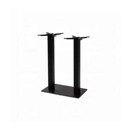 Die Café-Tischbasis ALFA DUO in Schwarz aus pulverbeschichtetem Stahl mit 40×70 cm rechteckigem Standfuß. Universelle Höhe von 72 cm, verstellbare Kunststofffüße und modernes Design – perfekt für Restaurants, Cafés und Bankettbereiche. Sofort lieferbar!