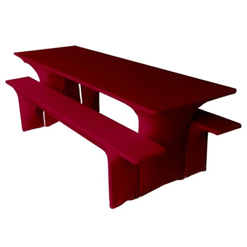 Verwandeln Sie Ihre Bierzeltgarnitur mit dem Festzeltgarniturhussen-Set München Stretch Bordeaux, das Eleganz und Schutz bietet.