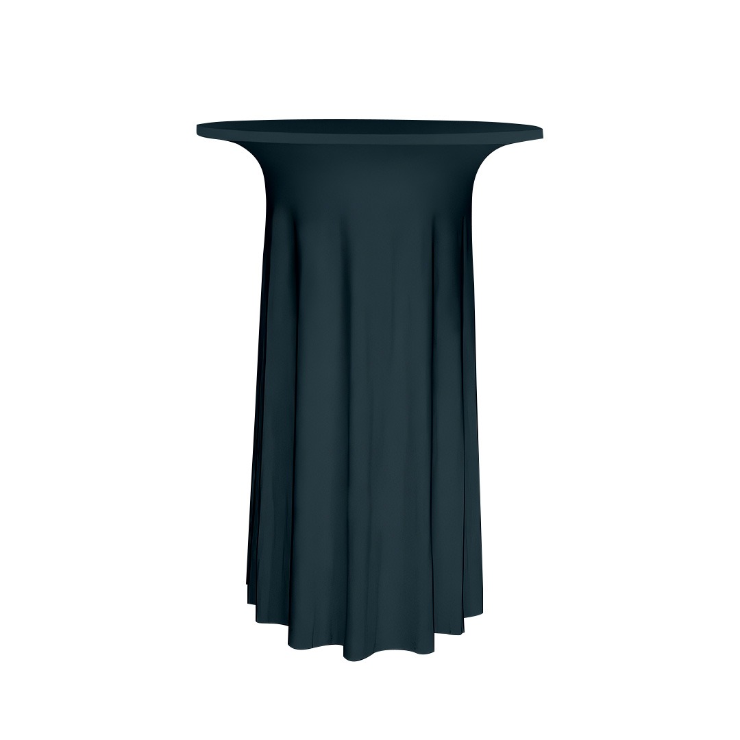 Luxuriöse Stehtischhusse in Dunkelpetrol, verfügbar in 3 Größen, aus Micro Polyester und Elastan, waschbar. Ideal für Events!