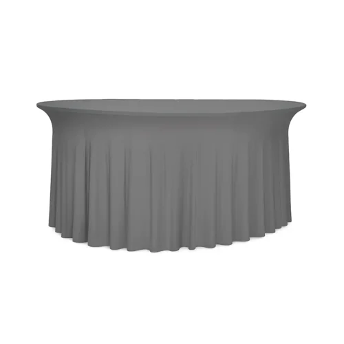 Bringen Sie Farbe und Eleganz auf Ihre Tische mit der runden Deluxe-Tischhusse in Anthrazit von Gastro Uzal.