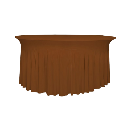 Die schokoladenbraune runde Deluxe Tischhusse bietet durch ihre schwere Qualität und hohe Elastizität eine warme und exklusive Tischpräsentation für Ihre Events.