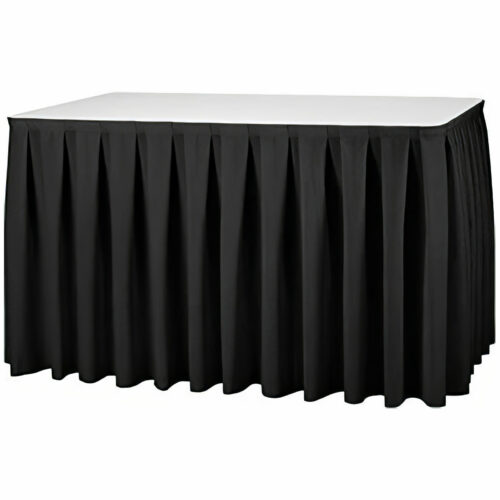 Das Skirting Excellent Kellerfalte Schwarz B1 kombiniert elegantes Design mit höchster Sicherheit dank B1-Zertifizierung nach DIN 4102. Die klassische schwarze Farbe verleiht jeder Veranstaltung eine moderne, edle und professionelle Optik, ideal für Konferenzen, Messen, Bankette, Galadinner und Hochzeiten. Die Kellerfalte (Boxpleat) sorgt für eine luxuriöse Ausstrahlung, während das schwer entflammbare Polyestergewebe höchste Sicherheitsstandards erfüllt.