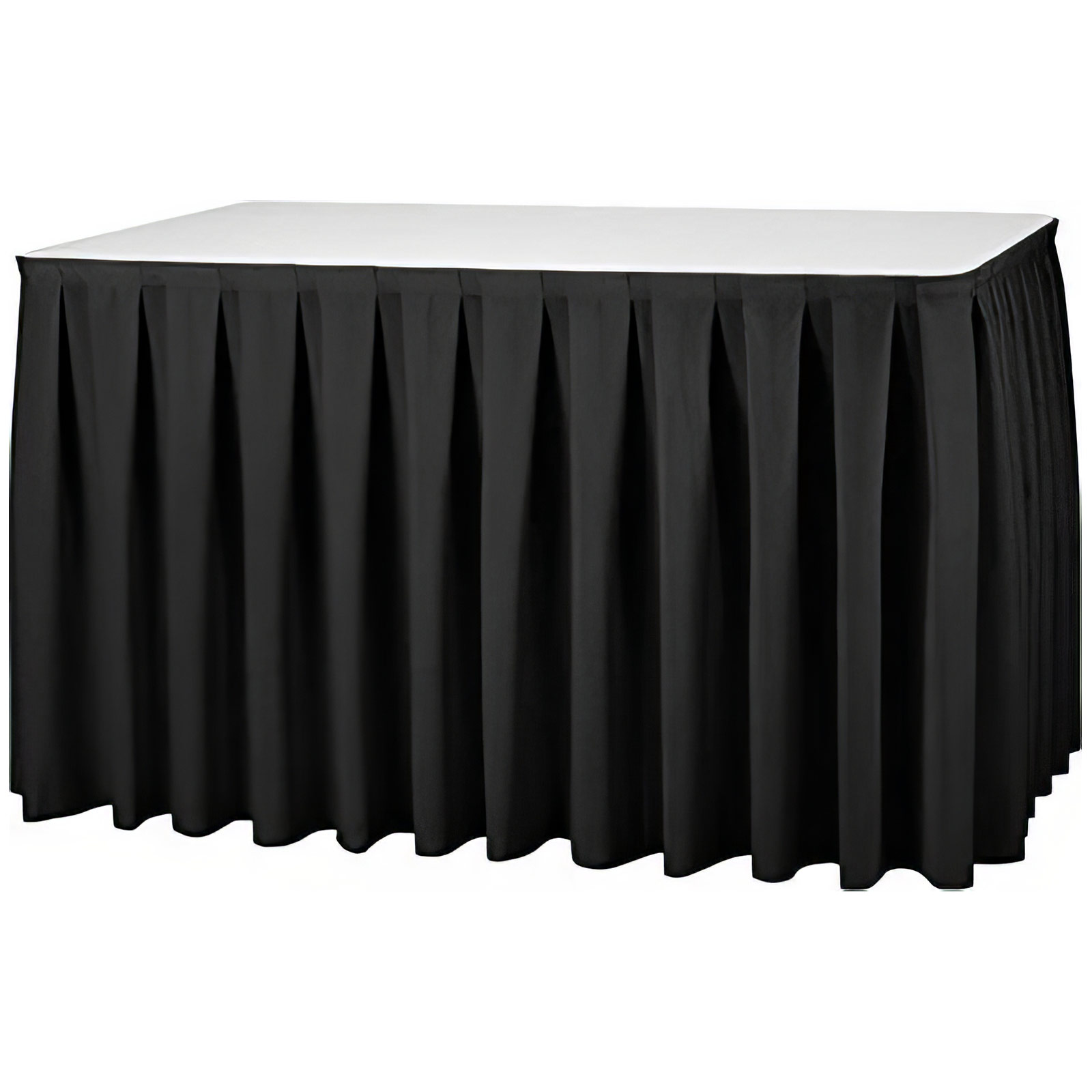 Unser Skirting Excellent mit Kellerfalte (Boxpleat) ist schwer entflammbar nach DIN 4102 B1 – perfekt für Hotels, Restaurants, Messen, Konferenzen und Business-Events.