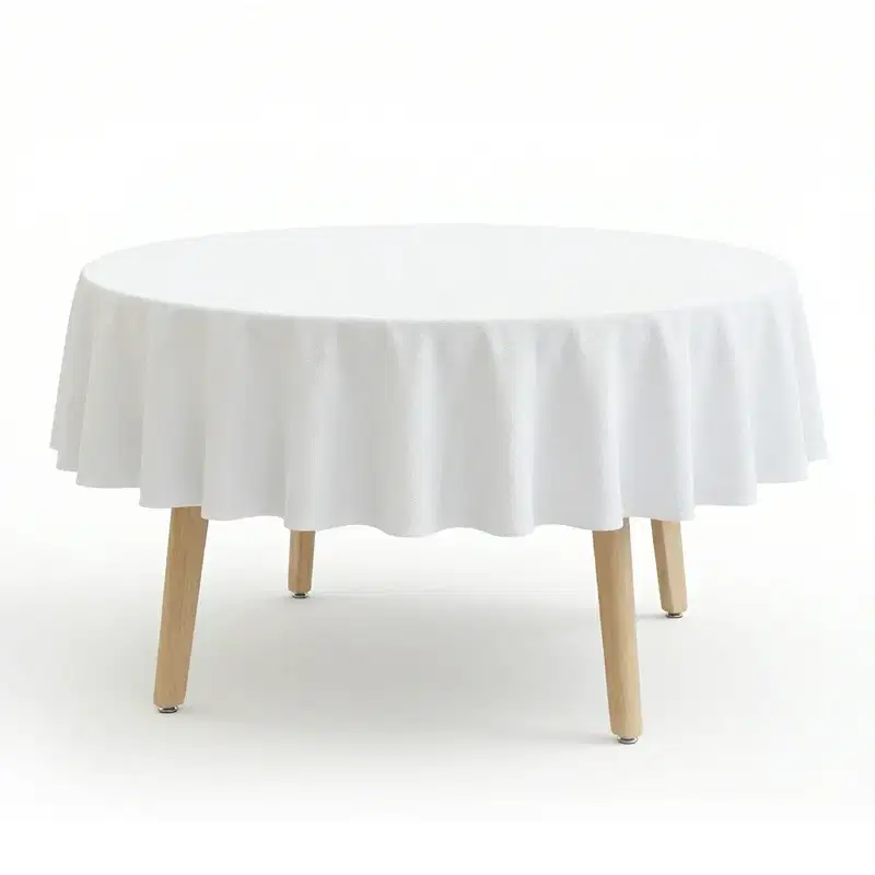Elegante Tischdecke Catering rund weiß aus 100% Polyester, ideal für jede Veranstaltung – langlebig, pflegeleicht und stilvoll.