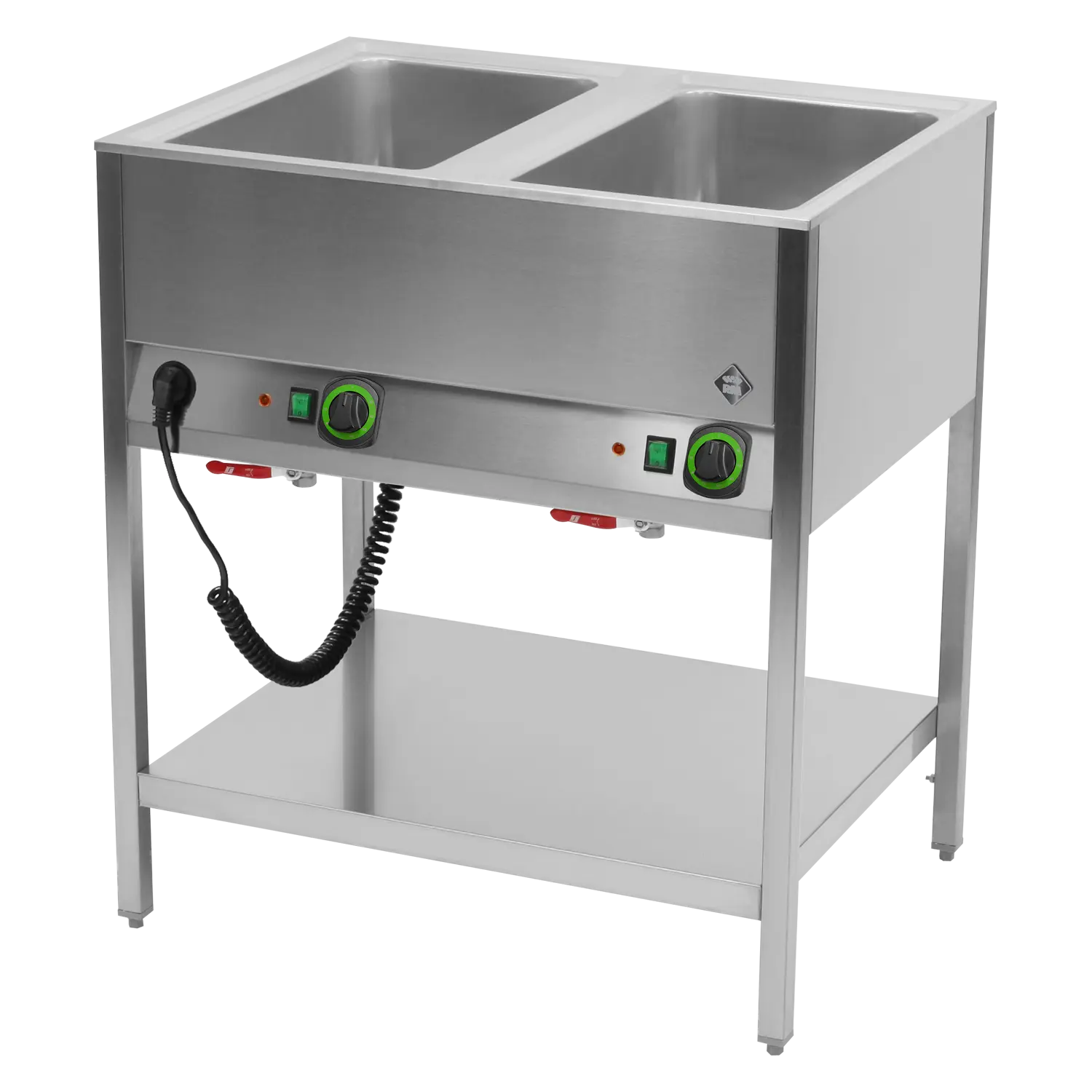 Bain Marie stationär elektrisch GN 2-1/1 Steuerung auf der längeren Seite mit Ablageboden | RM – BMSD 2120