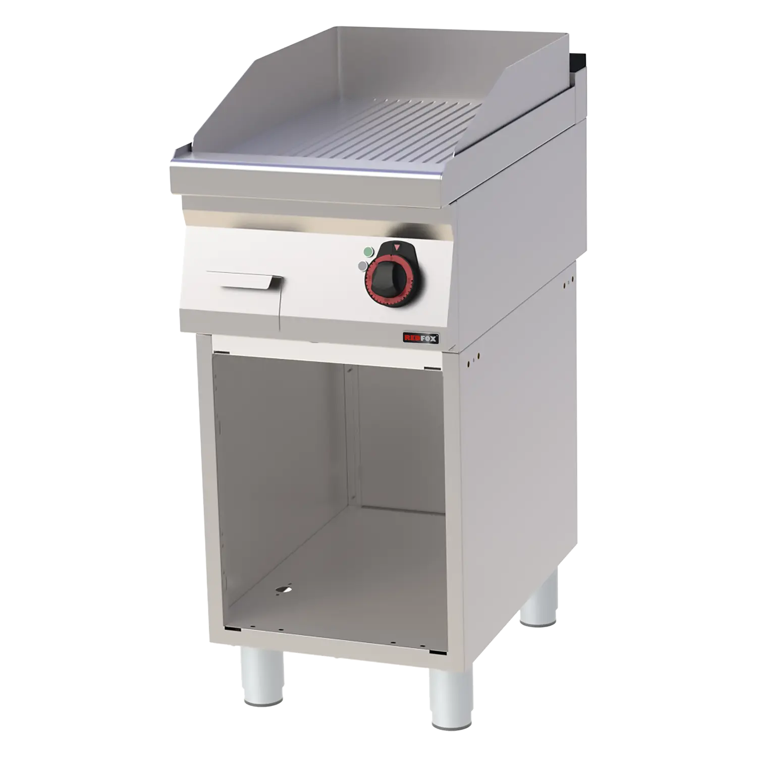 Grillplatte 40×51 elektrisch geriffelt mit Unterbau 400 V | REDFOX – FTR 70/40 E