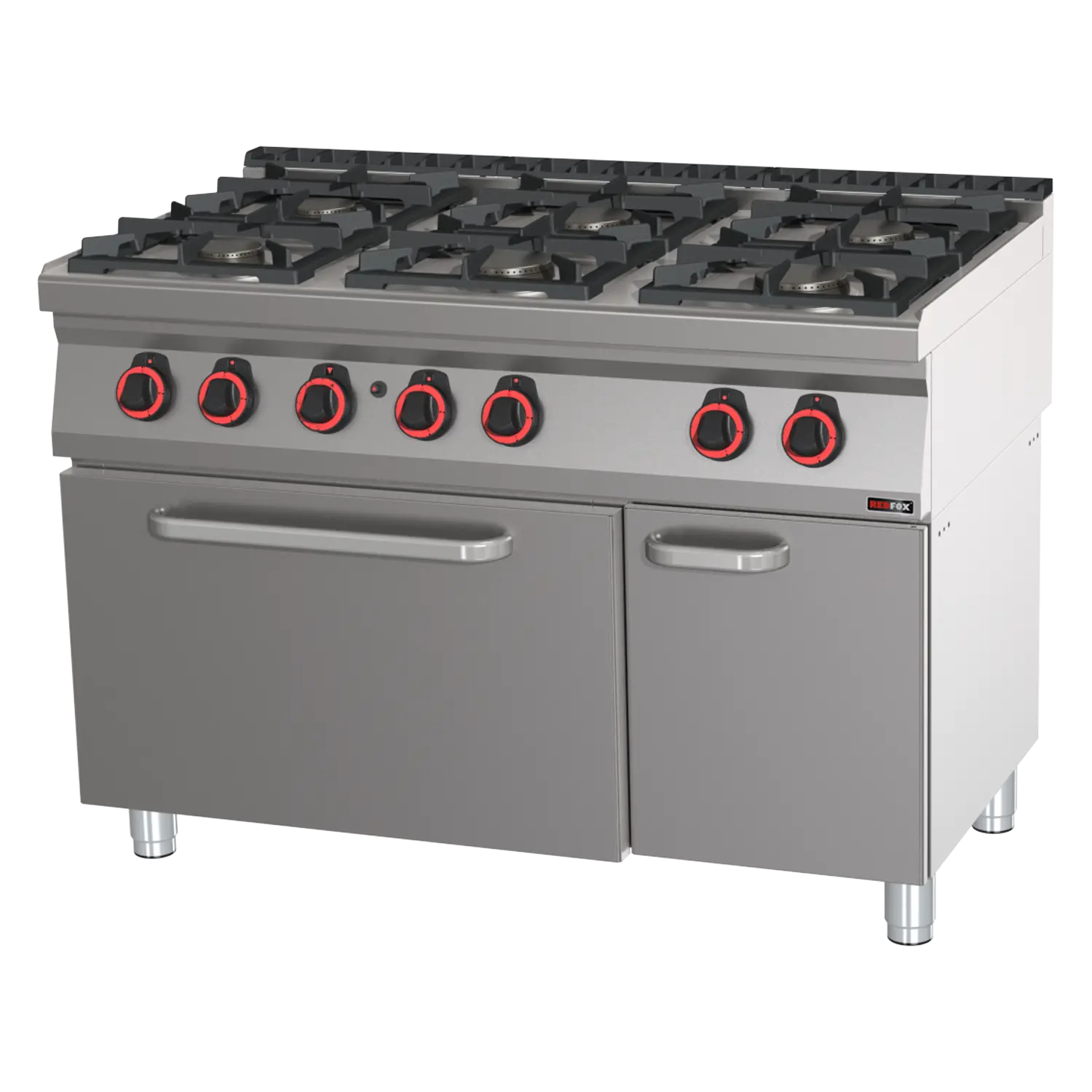 Gasherd mit statischem Gasbackofen GN 2/1 – 6x Brenner ECO | REDFOX – SPBT 70/120 21 G