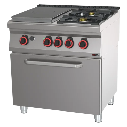 Glühplatten-Herd Gas mit statischem Elektrobackofen GN 2/1 – 3x Brenner | REDFOX – STPT 70/80 21 GE