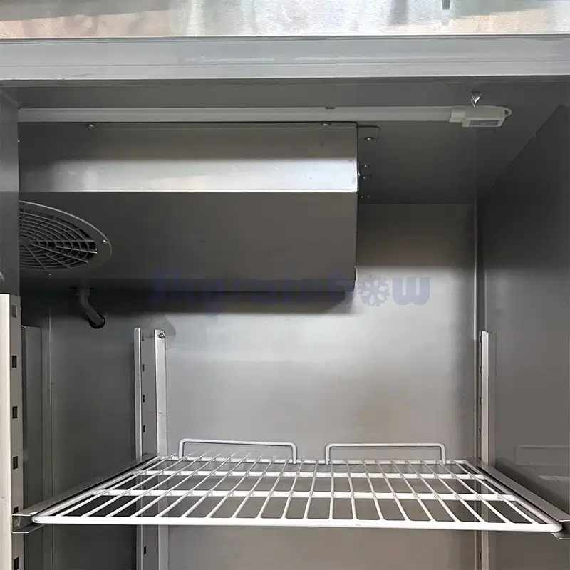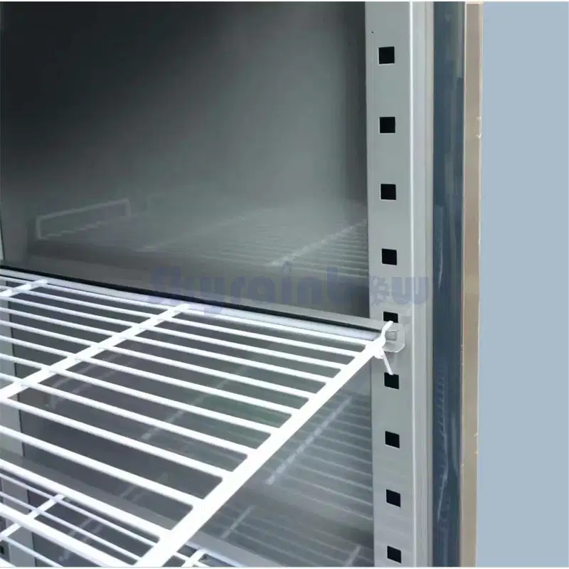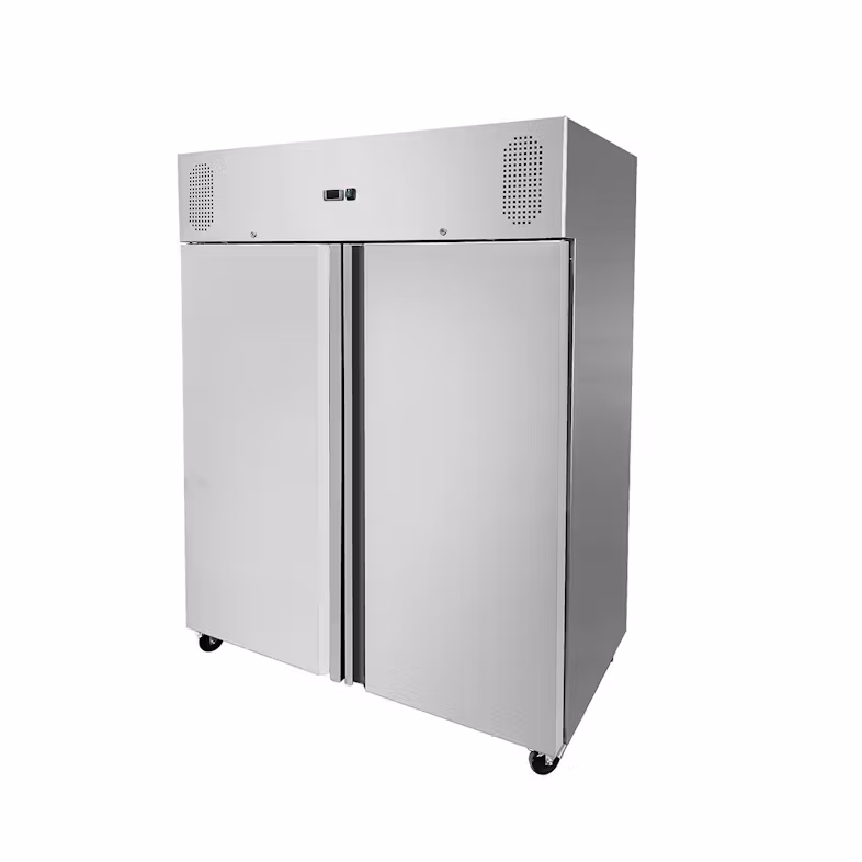 Skyrainbow Edelstahl Umluft-Kühlschrank GN2/1 – 1333 Liter, Temperaturbereich -2°C bis +8°C, Energieeffizienzklasse A. Mit 2 Türen, Digitalthermostat, automatischer Abtauung & Türschloss – ideal für Gastronomie & Großküchen.