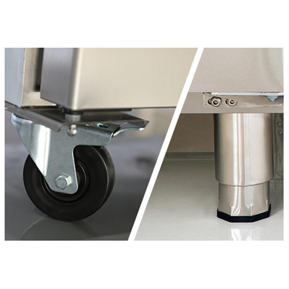 Der großzügige, gekühlte Innenraum dieses Pizza Kühltisches ermöglicht die optimale Lagerung von frischen Zutaten, Soßen und diversen Lebensmitteln, die täglich in Ihrer Küche benötigt werden.